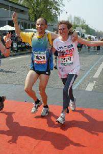 Nathalie et moi même devant l'Arc de triomphe aprés l'arrivée du Marathon de Paris que nous avons effectué en 4h43mm 39s pour Nathalie et 4H43mm40s pour moi ( Objectif de départ 4H45 )